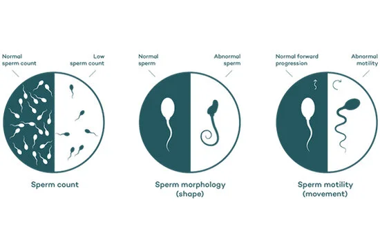 Diagram of sperm count, morphology and motility performed in a routine semen analysis. Source: Healthy Male Andrology Australia.